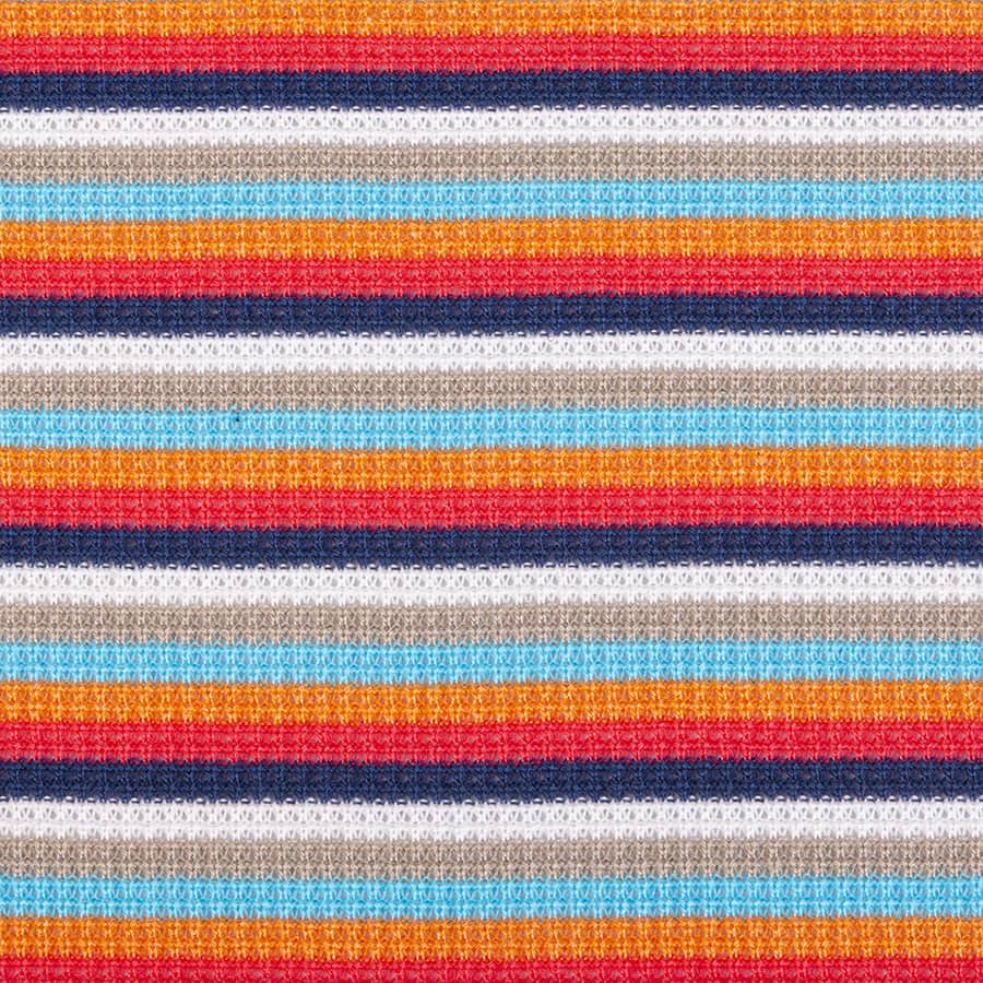 White-Orange-Turquoise-Red Striped Piquee Knitte Fabric
